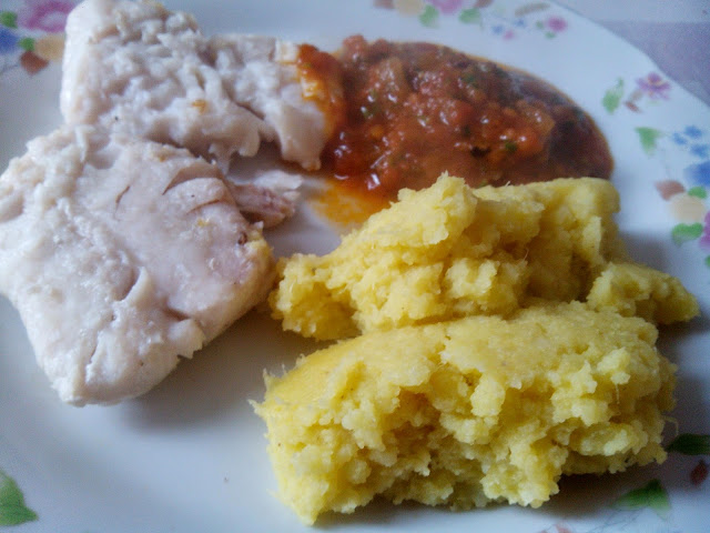 Puré de batata doce com molho de tomate e especiarias a acompanhar uns filetes de pescada grelhados...